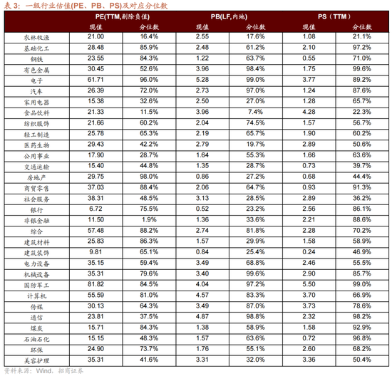 【数据·估值】本周整体A股估值水平较上周下行,万得全A指数PE(TTM)为17.99,处于历史估值水平72.9%分位数。本周指数估值涨跌分化,其中,食品饮料、房地产和美容护理估值涨幅居前,有色、电子和计算机跌幅居前。