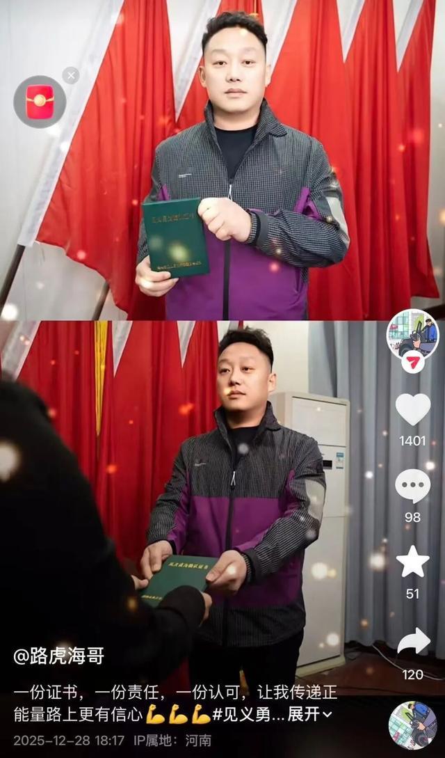 2026年1月16日,贾先生拿到了郑州市颁发的见义勇为确认证书,他坦言,当时的心情很激动,“在这件事之前,我其实就已经做了十多年的公益,但从没因为做好人好事得到过这样的肯定,虽说做公益从来不是为了得到认可,但能获得这份殊荣,心里还是挺幸福的。”