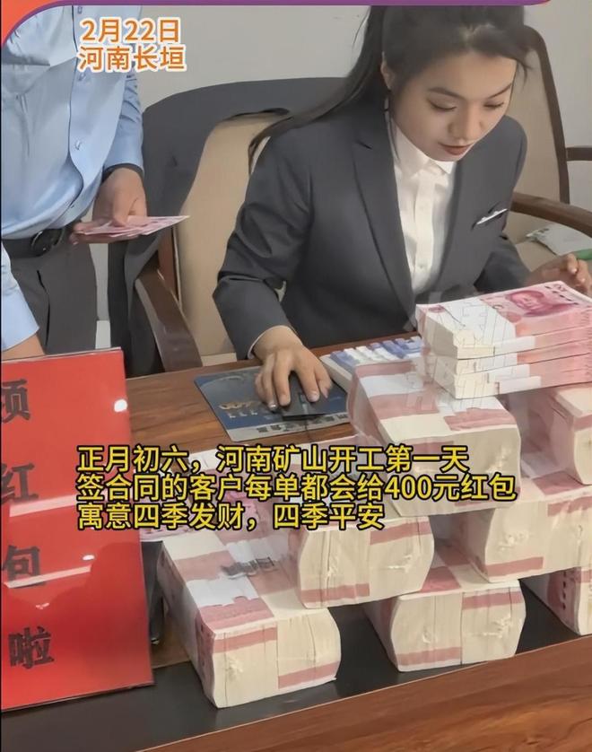 企业更显诚意:桌上摆放100万元现金,每签一单就给客户发400元红包,寓意“四季发财、四季平安”。这个暖心又豪气的惯例,已经坚持多年。